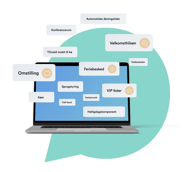 Vores omstillingspakke til mobilabonnement erhverv giver dig avancerede funktioner som tastemenuer, køsystem og personlige beskeder.